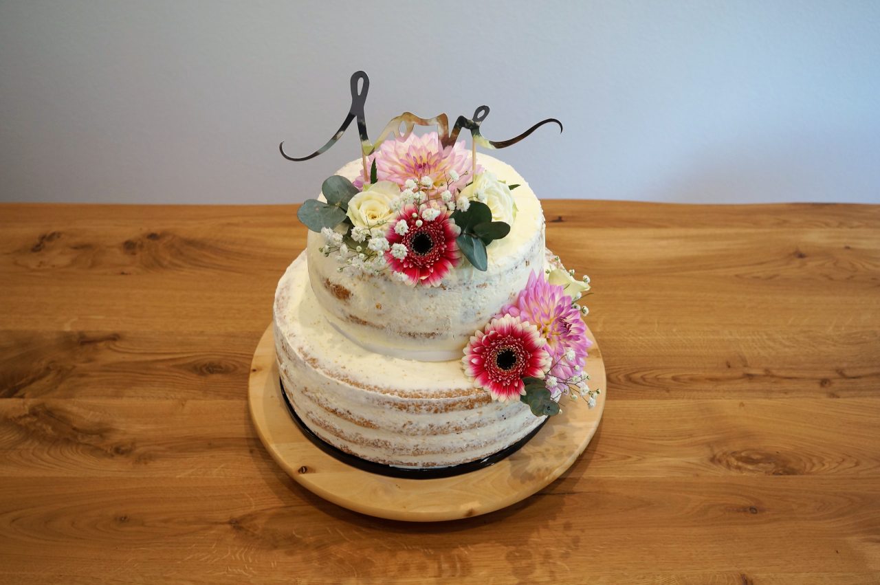 Ihr habt es schon gesehen, es wurde wieder geheiratet. Dieses Mal ist es meine eigene Hochzeitstorte. Ihr fragt euch jetzt sicher, ob ich verrückt bin, dass ich meine eigene Torte gebacken habe. Ja das habe ich und ich bin sehr froh, dass ich es gemacht habe. Zum Einen konnte ich die Geschmacksrichtungen selbst koordinieren und auf uns und die Gäste abstimmen und zum Anderen sind selbstgemachte Torten einfach immer die Besten.