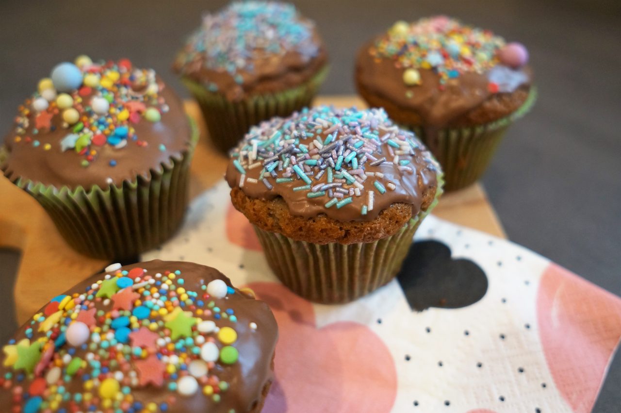 manchmal soll es einfach schnell und einfach gehen, oder? Wie wäre es da mit einem einfachen Muffin-Rezept, dazu eine Schoko-Glasur und Streusel – damit die Kinderaugen leuchten 🙂