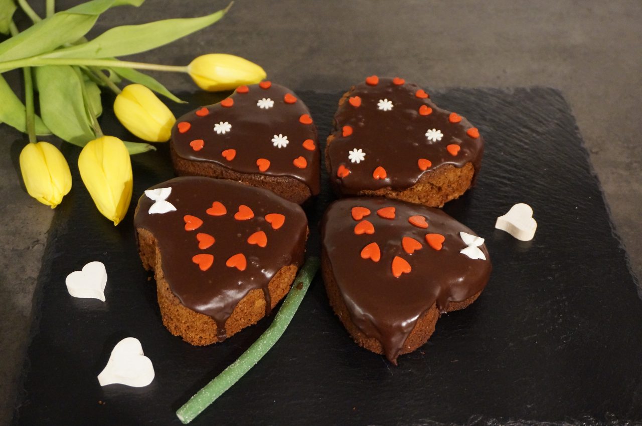 - Nun den Teig in die Herzförmchen füllen und für ca. 35-40 Minuten backen.